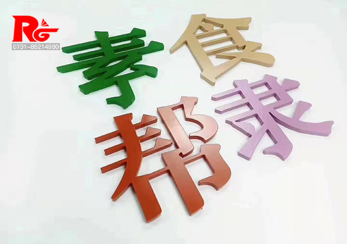 我公司生產(chǎn)的PVC烤漆字通常采用結皮PVC制作,在精工雕刻設備下料后精工打磨、噴漆、烤漆字、等等工藝制作而成。